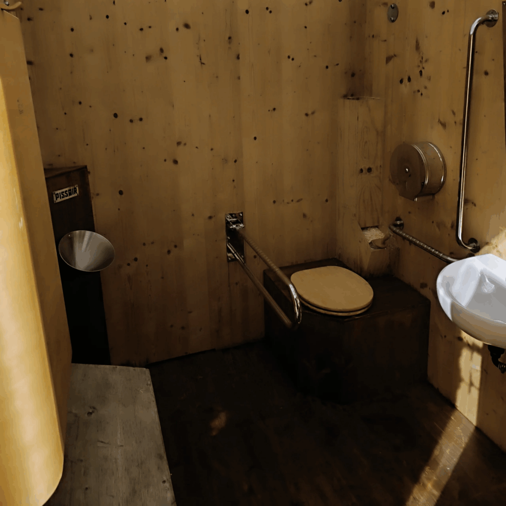 Es steht euch ein Kompotoi (Komposttoilette) zur Verfügung, welches auch mit dem Rollstuhl zugänglich ist.